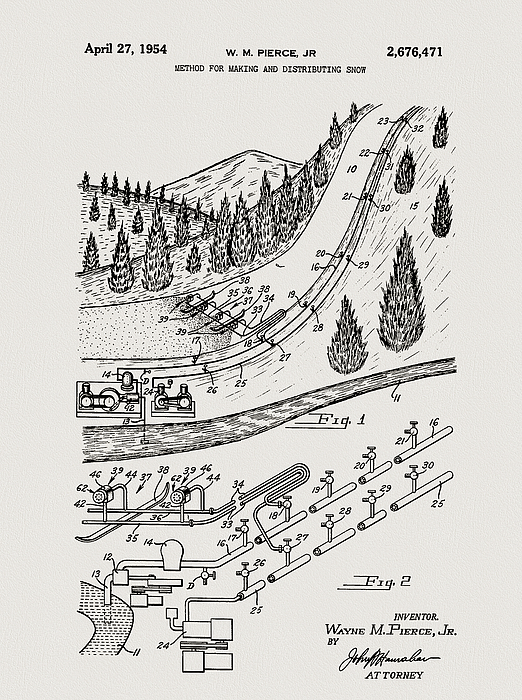 Vintage 1954 ski resort snowmaking machine patent fully restored. This historical illustration would be a great addition for the ski resort or... more