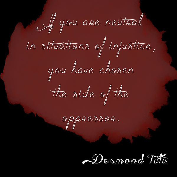 Famous quote from Desmond Tutu on injustice and standing up for human rights.