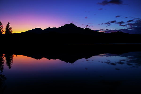 A stunning and colorful sky fades over the jagged peaks of the Canadian Rocky Mountains. I captured this image along the shores of Pyramid Lake providing reflections of this amazing moment in nature.
