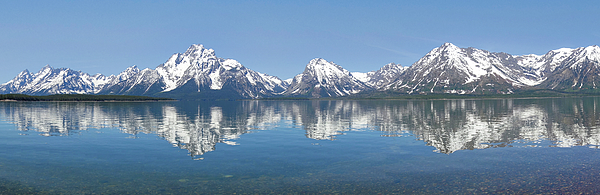 A beautiful and stunning reflection appeared near Jackson Lake Dam in Grand Teton National Park on this spring morning. I captured this mirror like reflection in panorama style allowing for details across the mountain range and water.