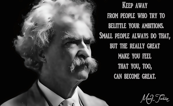 Inspirational quote from famed author Mark Twain on ambition.